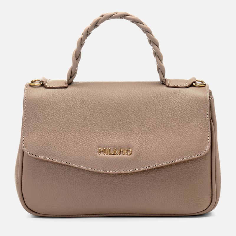 Bolsa Feita em Couro Pequena Tote tipo Baú de Mão com Alça Tiracolo ou Transversal Opcional na cor Fendi. Com formato baú retangular pequeno com cantos arredondados, feita em couro legítimo, face frontal com acabamento em vivo também em couro nas laterais, fole lateral largo para mais espaço interno, aba frontal de fechamento com alça de mão aplicada na parte superior feita em couro trançado, nesta alça vão aplicados 2 elos em metal dourado para aplicação da alça tiracolo ou transversal opcional, feita no mesmo couro em tira achatada com acabamento em vira italiana (pintura no acabamento do couro) com ajuste e regulagem de altura feita por fivela também em metal dourado, na aba vai aplicada a marca Milano em letreiro de metal dourado e o fechamento é feito por 2 botões magnéticos. O interior é revestido em tecido na cor preta e possui 2 divisórias abertas e um bolso central com zíper dourado, forração em tecido na cor preta e possui uma tag em couro aplicada na face traseira com a marca Milano Est. 1974 (desde 1974 em português).