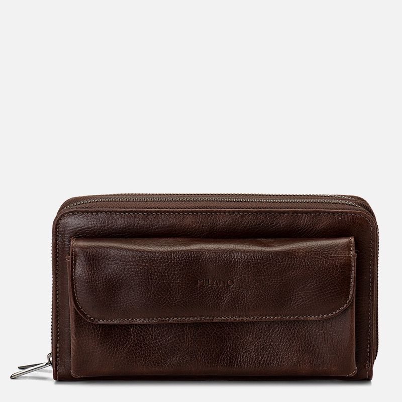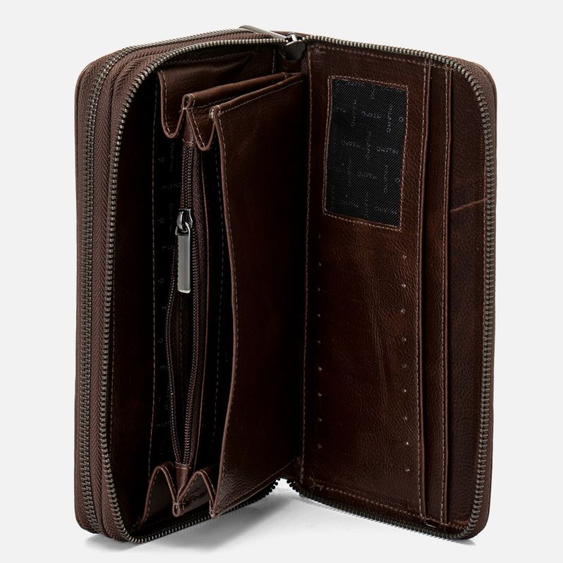 Carteira Masculina Grande Feito em Couro Floater de Mão ou Pulso na cor Café