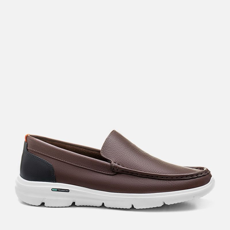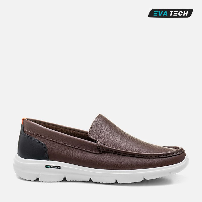 MasculinosCasualDriverMocassim Casual Driver Slip On em Couro Floater Solado EVA Tech Tecnologia Ultra Leve Calce Prático Sem Amarração Masculino Milano Chocolate 13666