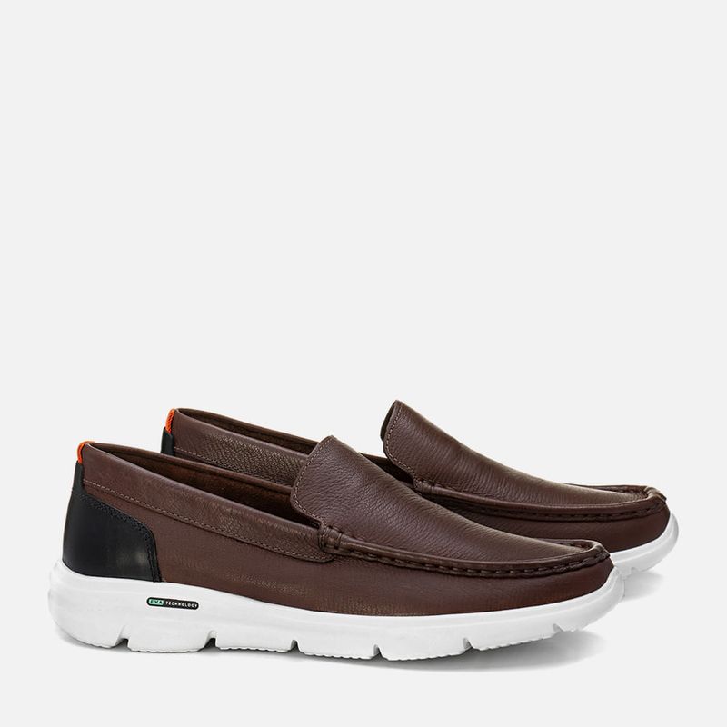 Mocassim Casual Driver Slip On em Couro Floater Solado EVA Tech Tecnologia Ultra Leve Calce Prático Sem Amarração Masculino Milano Chocolate 13666