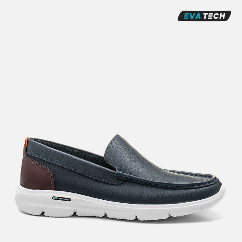 Mocassim masculino de estilo clássico e elegante. Feito com couro bovino floater para durabilidade e sofisticação. Possui solado em E.V.A, proporcionando leveza e conforto ao caminhar. Sua palmilha é de couro, garantindo conforto e respirabilidade. A calcanheira de P.U forrada em couro oferece suporte adicional. Detalhe: solado extremamente leve para uma experiência confortável durante todo o dia.
