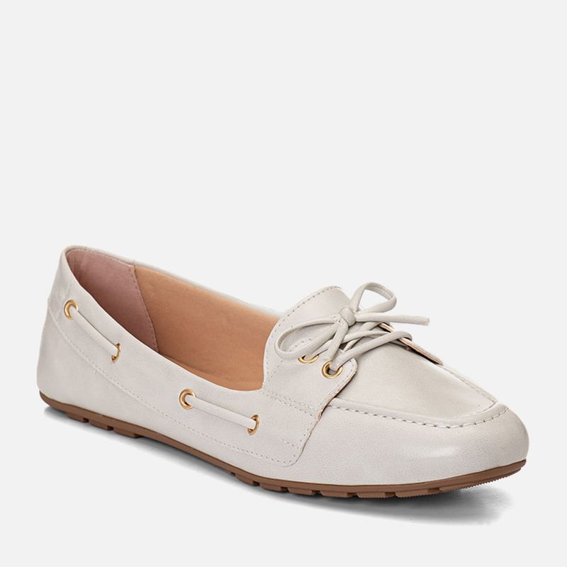 Mocassim Driver Clássico com Costura Aparente e Tira Transpassada com Laço no Peito do Pé com Solado Emborrachado com Travas na cor Off white. Com solado emborrachado na cor caramelo com travas horizontais clássicas dos modelos driver e detalhe aparente na traseira. O cabedal tem traseira e bico arredondados, detalhe em recortes no peito do pé, traseira e contorno do cano, a parte frontal tem acabamento em costura pesponto aparente na biqueira – deixando um visual bem marcado e clássico do modelo. O decote no peito do pé é quadrado e tem uma tira fininha no mesmo couro do modelo transpassada em toda a lateral da gáspea finalizando em lacinho na parte frontal do modelo sob o peito do pé que são transpassados em ilhós em metal dourado. O interior é forrado em tecido na cor nude, a palmilha é feita em napa lisa também na cor nude e tem furação na parte frontal para maior respirabilidade. A marca Milano vai aplicada na palmilha em etiqueta 3D na cor dourada.