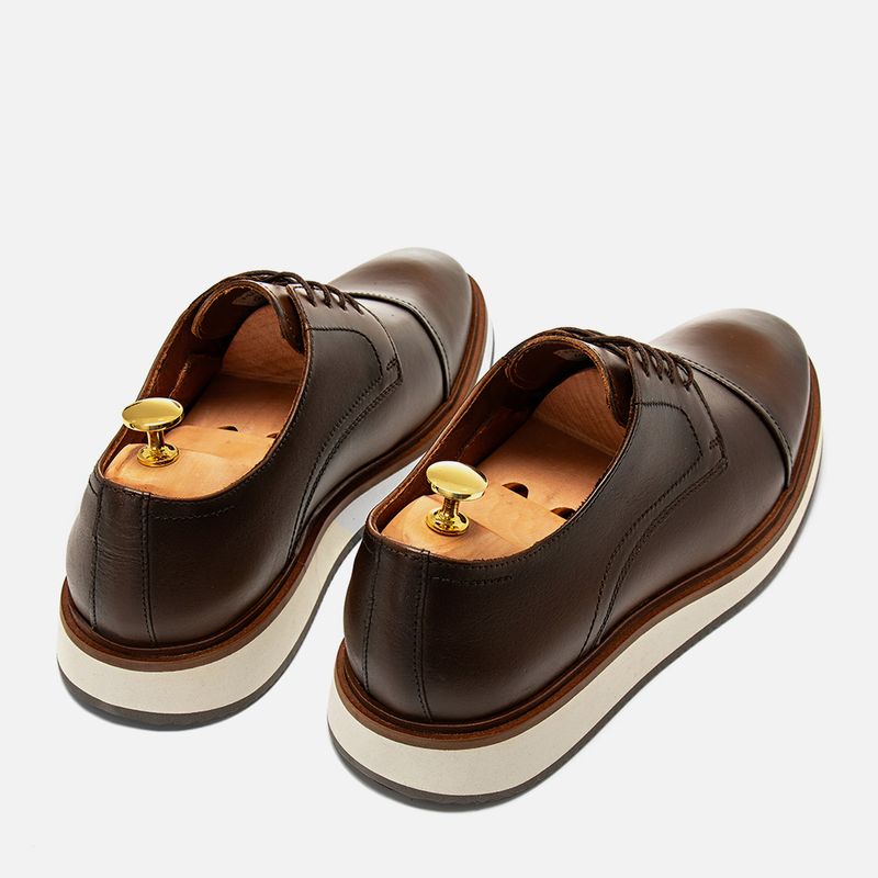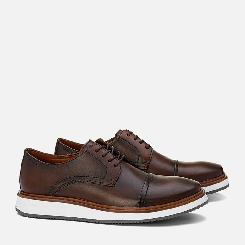 Sapato Casual Derby é confeccionado em couro Napa Soft, garantindo durabilidade e conforto. Apresenta solado bicolor emborrachado em microexpandido, que proporciona leveza e aderência. A palmilha anatômica, com calcanheira de P.U forrada em couro, assegura suporte adequado ao caminhar. A forração interna combina couro com tecido, oferecendo respirabilidade e conforto térmico. Detalhes refinados completam o design deste modelo, ideal para ocasiões casuais e formais.