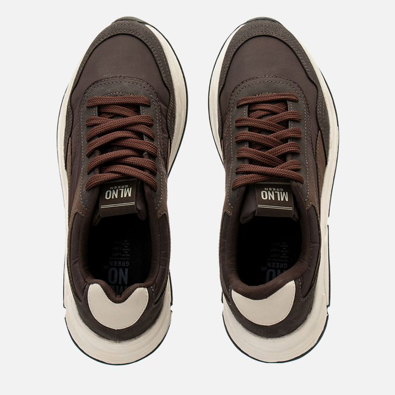 Tênis Casual Feito em Linha Green Napa e Tecido Alternativa Masculino Milano Café 14666