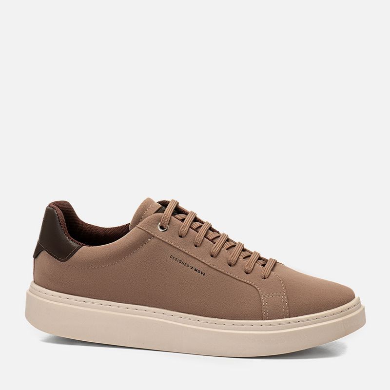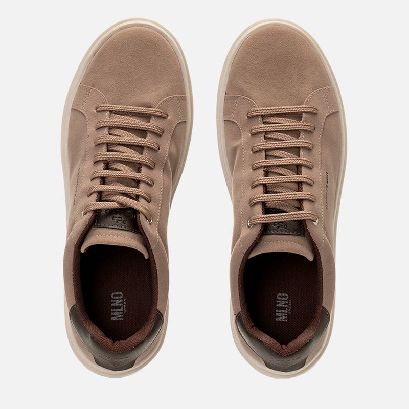 Tênis Casual Linha Green em Camurça Alternativa com Palmilha Anatômica na cor Mármore com Detalhes em Café.