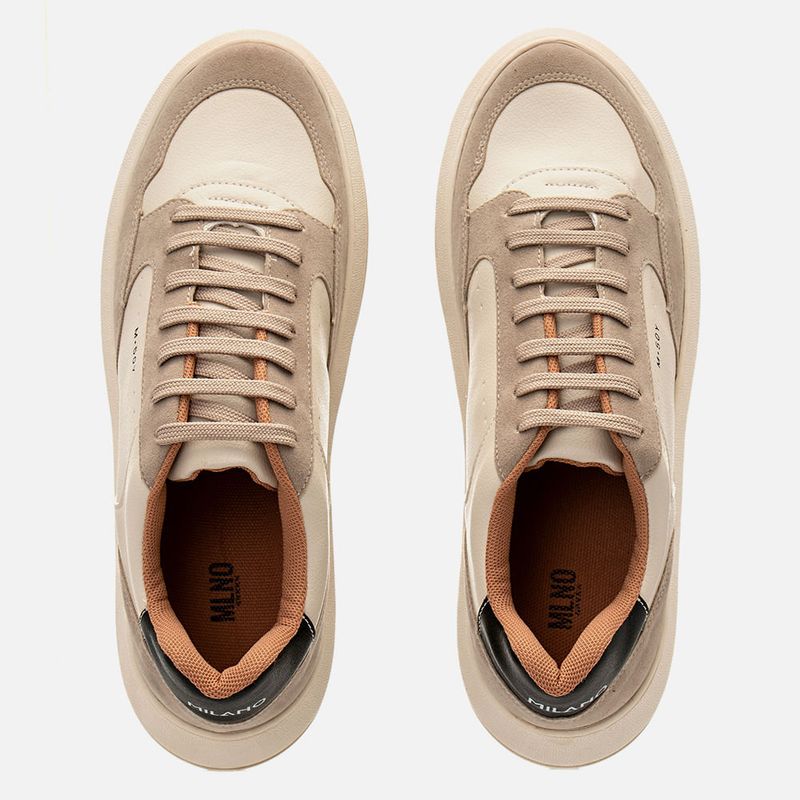Tênis Casual Linha Green em Napa Floater e Camurça Alternativa com Palmilha Anatômica na cor Off White com Detalhes em Bege e Preto.