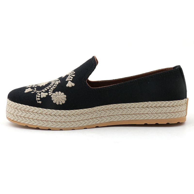 Alpargata feminina na cor preta com bordados, toda revestida e forrada em tecido. Possui palmilha macia e solado emborrachado.