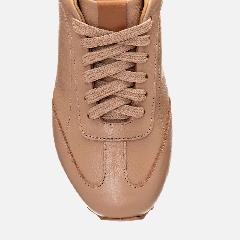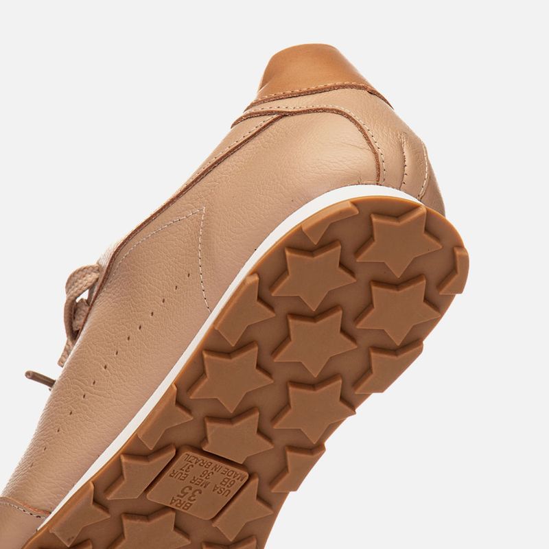 Tênis Visual Esportivo Retro Feito em Couro Solado Tratorado Bicolor e Recortes na cor Areia. Com solado tratorado na cor caramelo com formato dentado com vira no bico e liso na cor branco, cabedal com traseira e bico arredondados feito em couro legítimo, possui recortes em composição por todo o modelo com detalhe em furação e costura na lateral, o fechamento é feito por cadarço, ou atacador, achatado no mesmo tom do produto, possui aplique na língua em sobretom e traseira do calcanhar. A lateral do cano é acolchoada super macia para maior conforto do calce, forrada em tecido no mesmo tom do produto, tem palmilha macia também no mesmo tom com a marca Milano aplicada em etiqueta 3D na cor dourada.